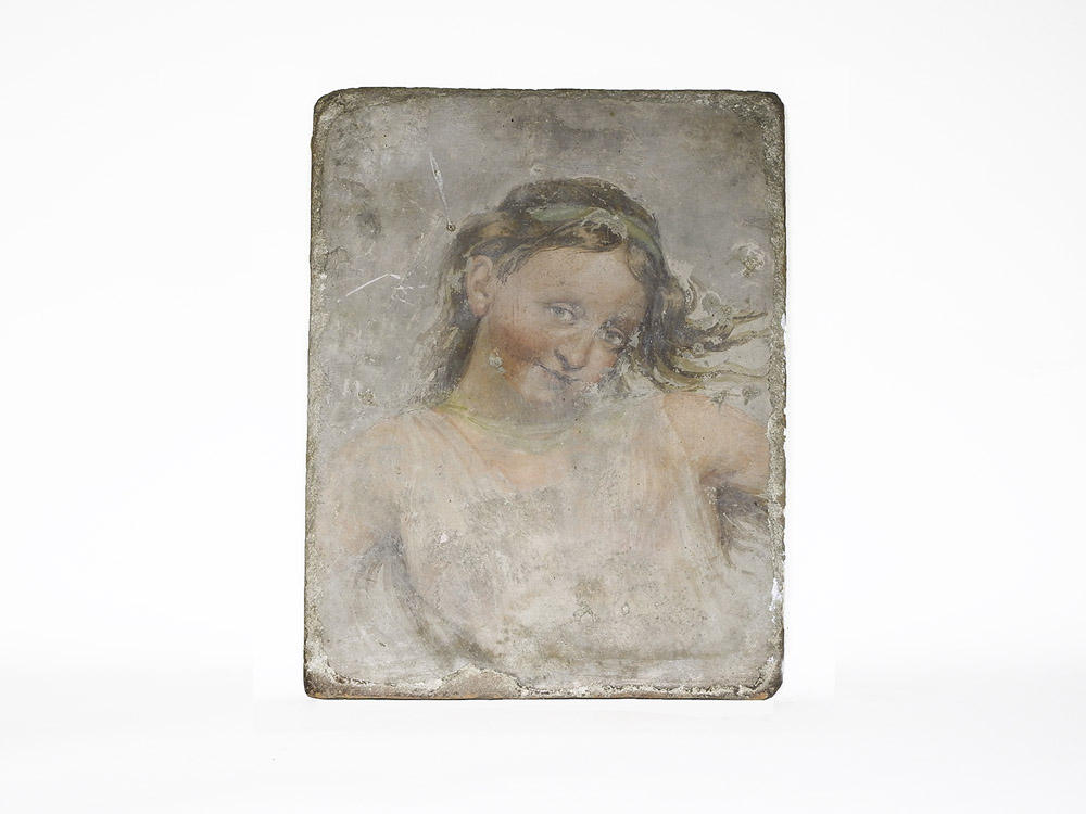 Placca in terracotta metà del XIX dipinta con figura di vestale, difetti cm 52x38