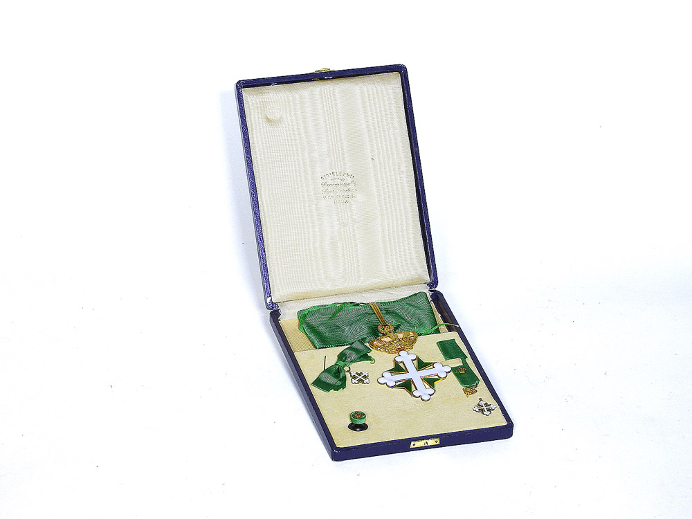 Croce di San Maurizio in smalti e metallo dorato alcuni difetti, entro astuccio (4)