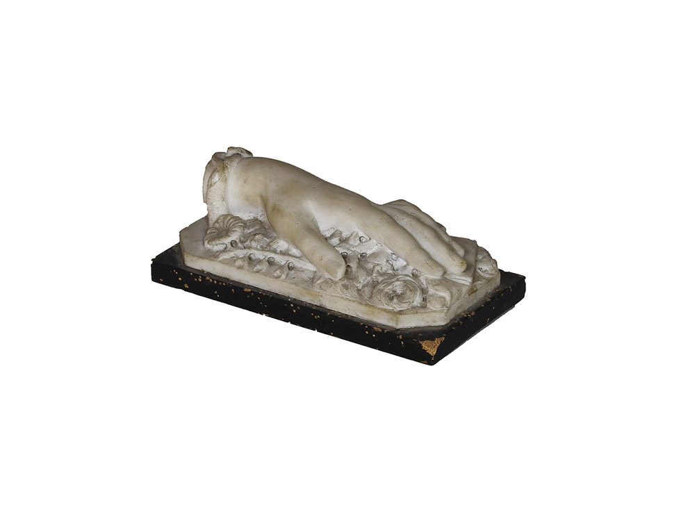 Mano femminile con bracciale e fiori Scuola toscana della metà del XIX secolo scultura in alabastro, su base in legno ebanizzato cm 25x13