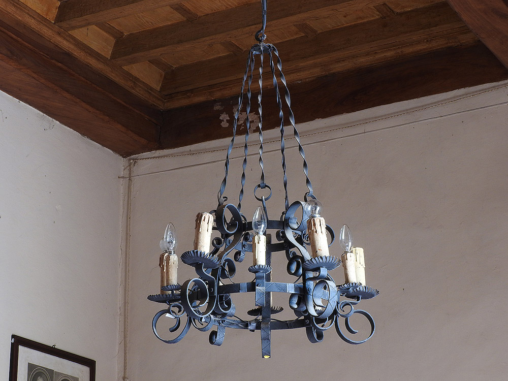 Lampadario a corona in ferro battuto dieci bracci portacandela h cm 80