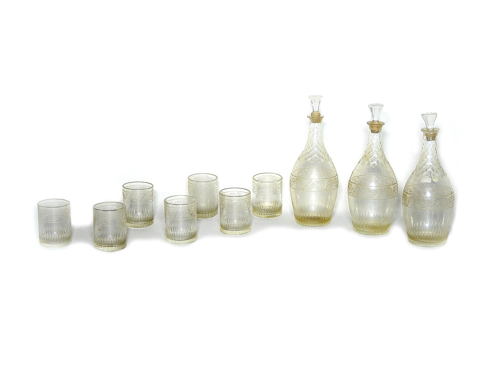 Lot 352 | Serie di sette bicchieri in cristallo XIX secolo fasce molate con volute e...
