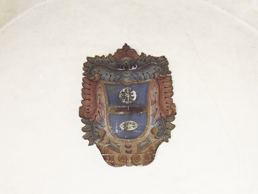 Stemma gentilizio XIX secolo dipinto ad olio su tela sagomata, difetti cm...