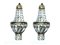 Coppia di appliques a paniere in metallo dorato e catene di perle in vetro h...