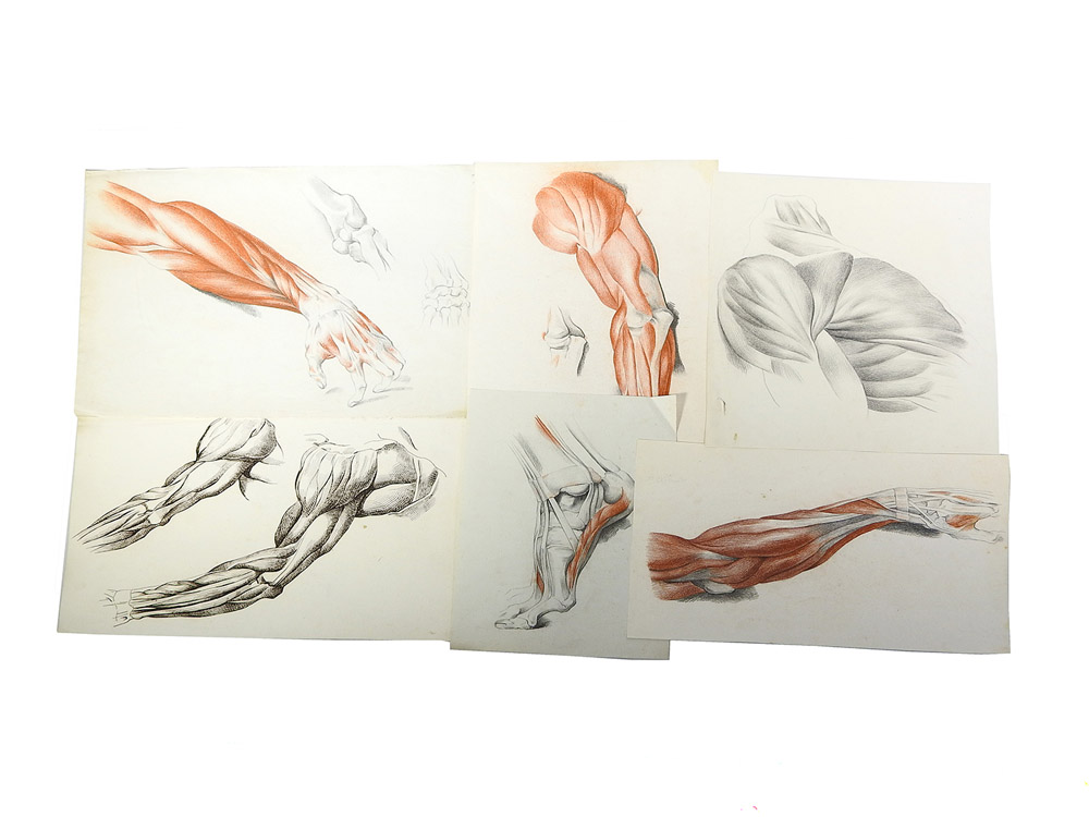 Miscellanea di disegni XIX secolo raffiguranti studi anatomici, contenuti in...