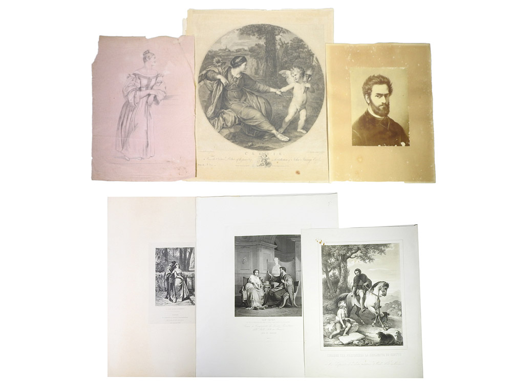 Raccolta di litografie e incisioni XIX secolo alcune con difetti