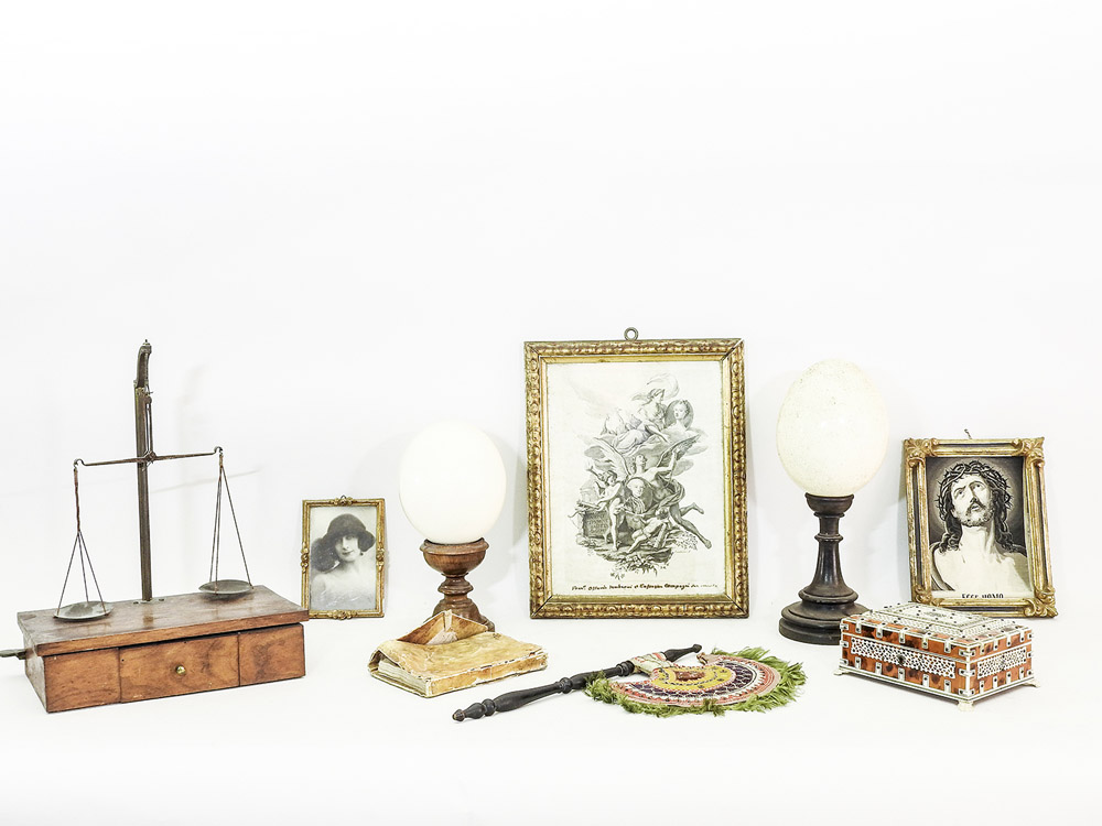 Lot 488 | Lotto di curiosità d’epoca tra cui una bilancia, due uova di struzzo e alcune...