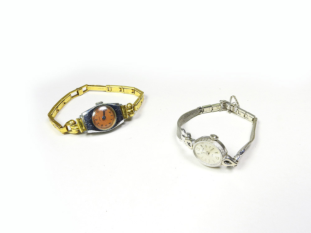 Lot 505 | Due orologi da polso d’epoca uno in acciaio con cinturino in oro a basso...