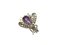Spilla animalier in oro a basso titolo e pietre realizzata come una mosca, corpo in ametista incisa, le ali impreziosite da rose di diamante gr 5,8