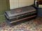 Vecchio baule da viaggio in legno dipinto applicazioni in metallo, coperchio...