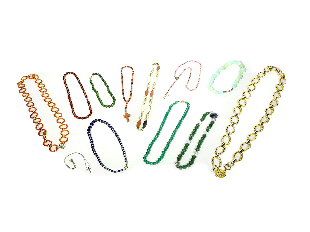 Lotto quattro collane in pietre dure, un crocifisso con cristalli ed altri bijoux