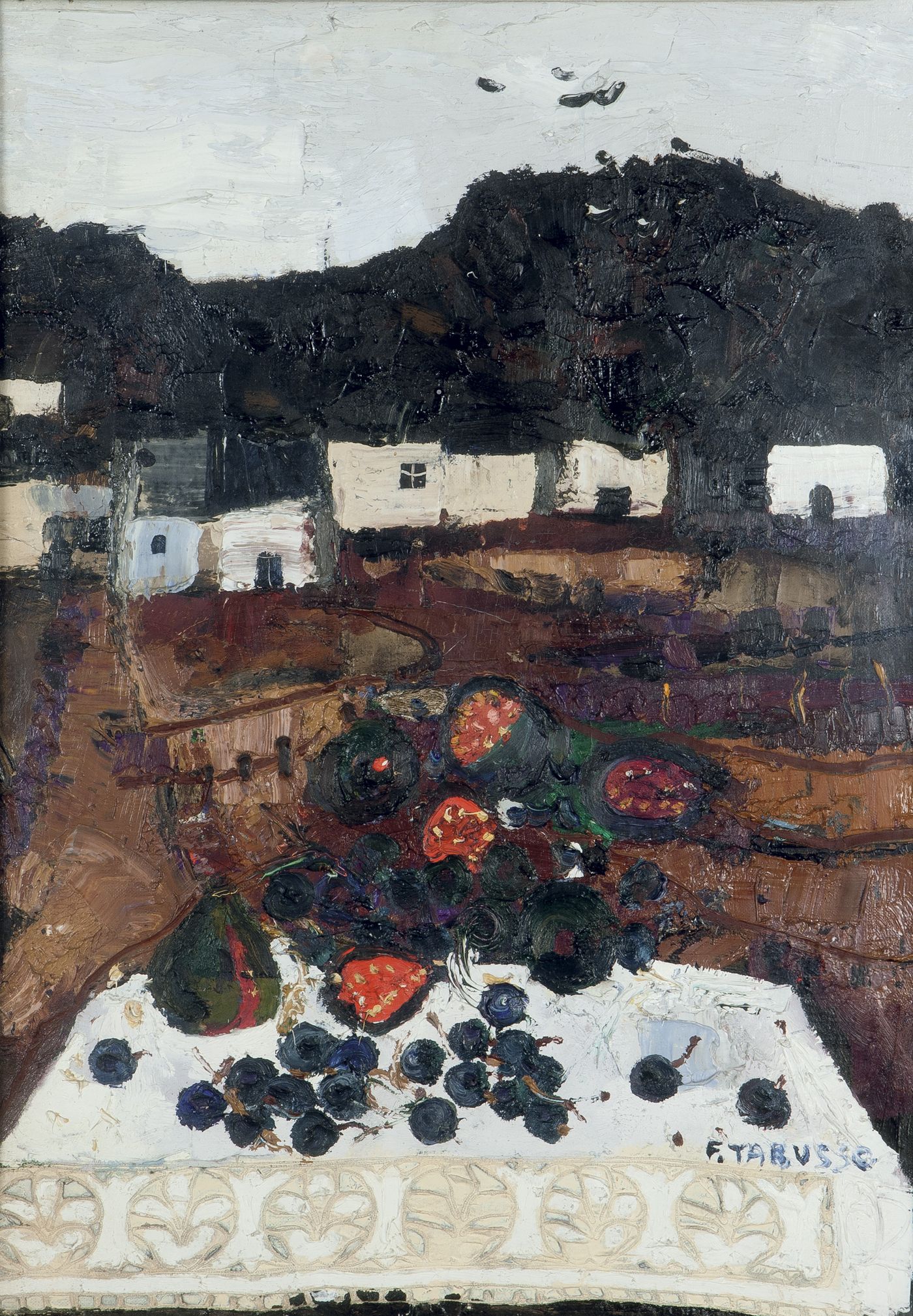 TABUSSO FRANCESCO (Sesto San Giovanni (MI) 1930) - "Natura morta", 70x50 olio su tela. Opera firmata in basso a destra. Restauri. Già Galleria Penelope, Roma (etichetta al retro)