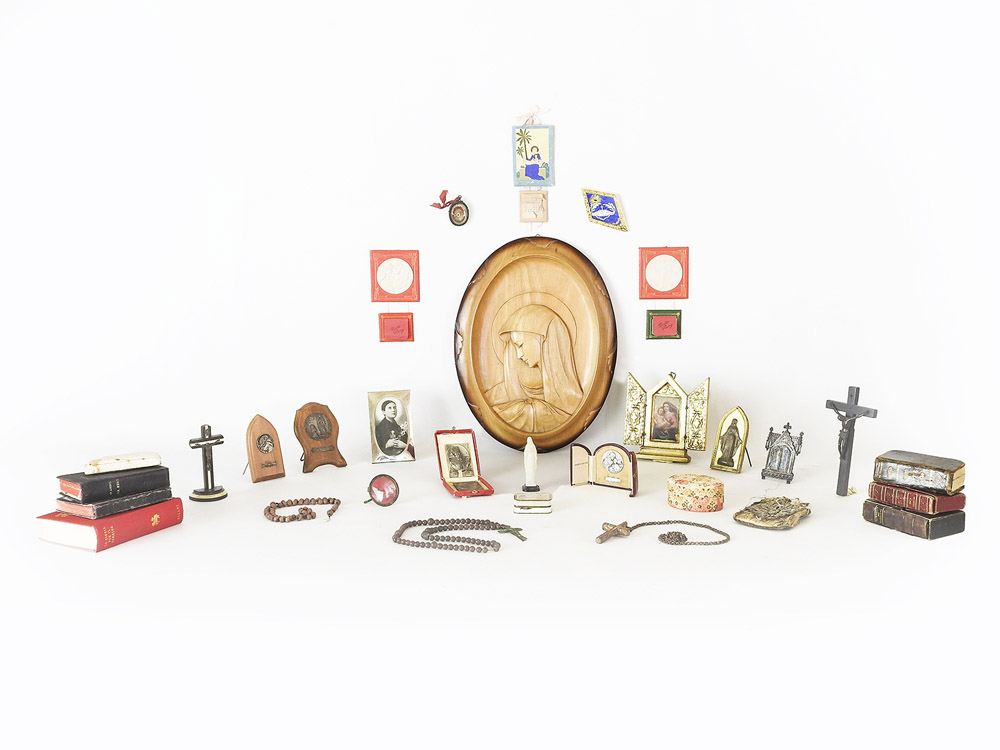 Lotto oggetti devozionali tra cui alcuni rosari, alcuni libri di preghiere e delle reliquie Devotional Objects Lot