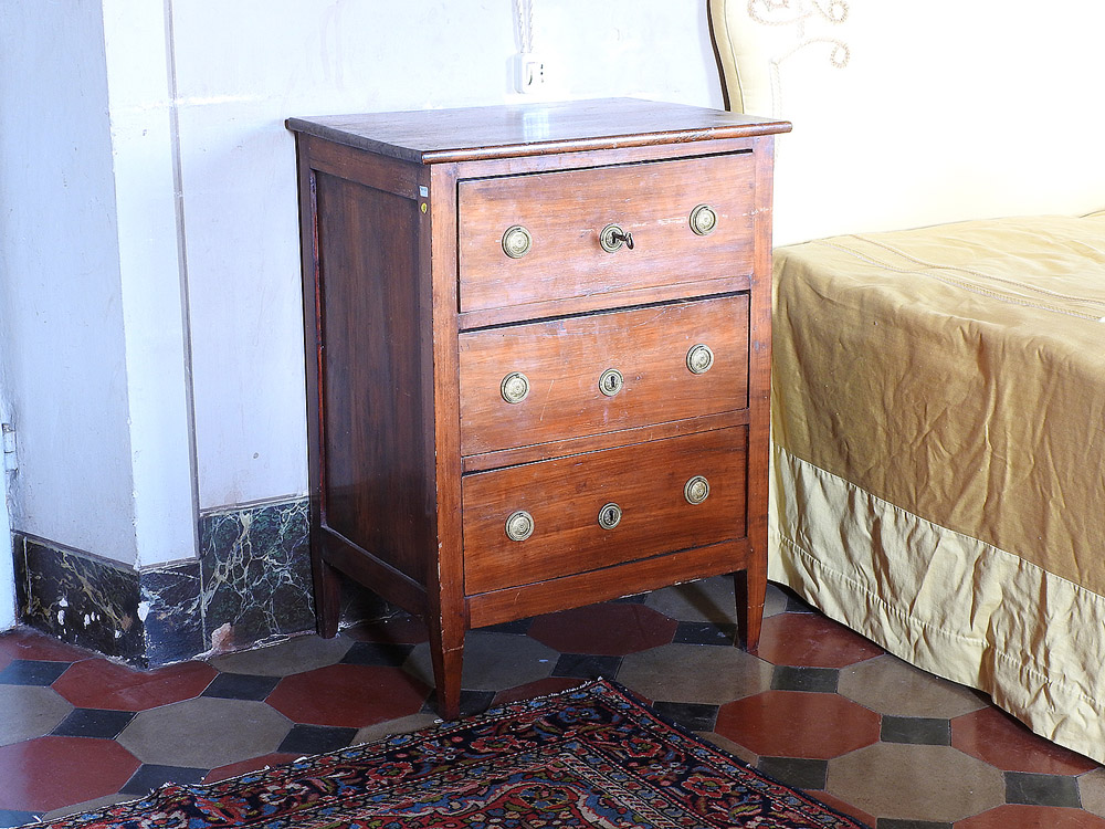 Comodino in ciliegio fine del XVIII secolo tre cassetti sul fronte dritto,...