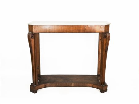 Console impiallacciata in noce prima metà del XIX secolo piano in marmo...