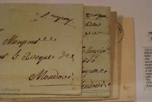 PREFILATELIA - 1814-64, MILLESIMO, lotto di 7 lettere che presentano annotazioni manoscritte di vario interesse: 2 del 1814 "per espresso", una con lineare e "da tassarsi" del 1845, 4 con doppi cerchi e "Dopo la partenza", "Trovata nella buca", "tassata p