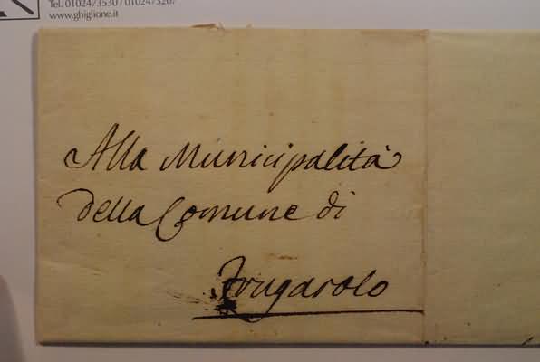 PREFILATELIA - 1799, lettera da Alessandria per Frugarolo, durante la prima occupazione francese del Piemonte, con al verso manoscritto "1799 li 15 marzo ricevuta si e' questa lettera con sei proclami, ed ha pag. soldi 15".(LETTERA)