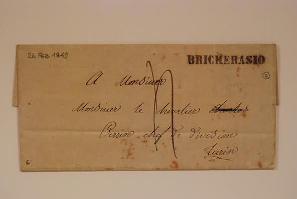 PREFILATELIA - 1849, BRICHERASIO, lineare su lettera tassata per...