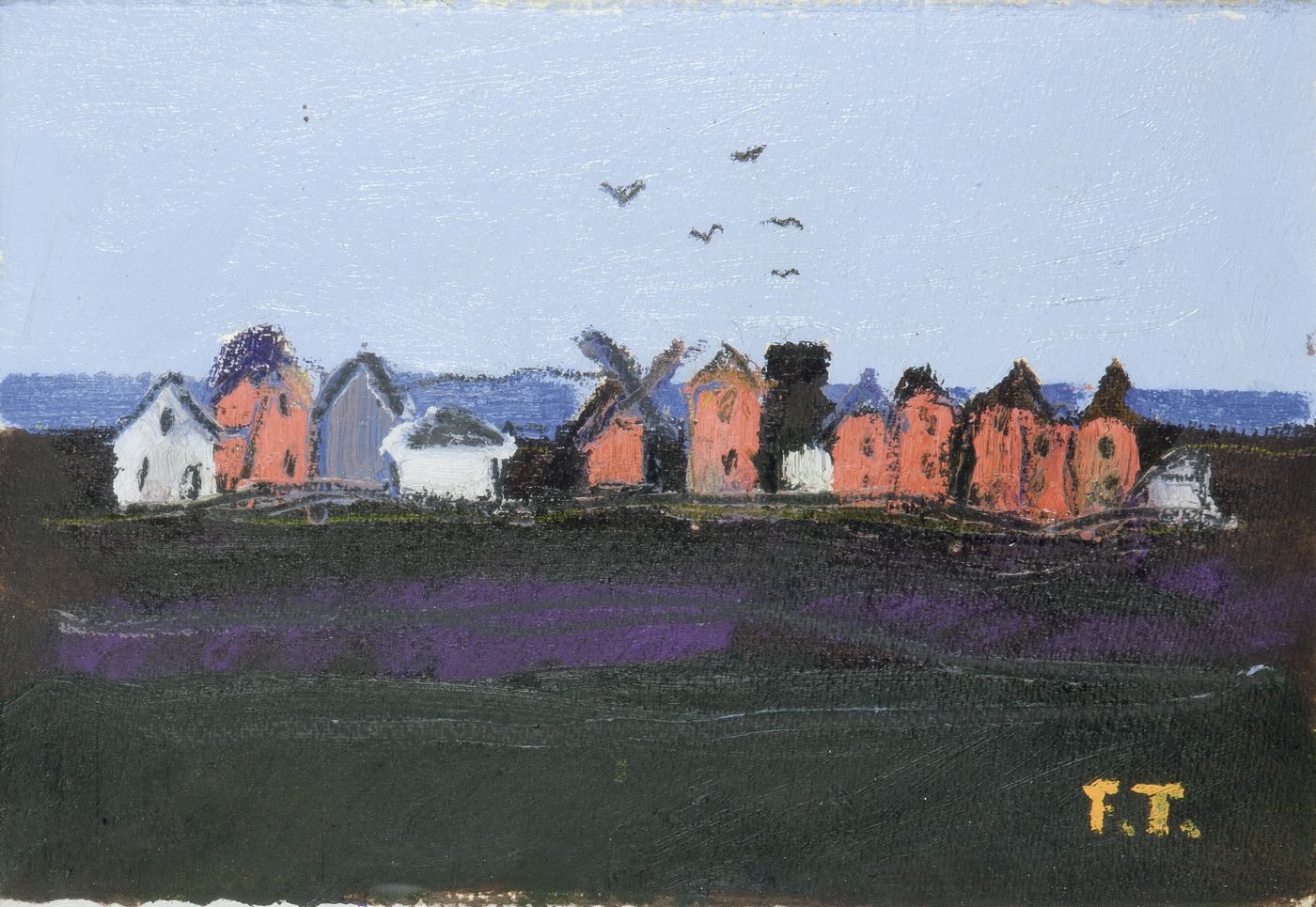 TABUSSO FRANCESCO (Sesto San Giovanni (MI) 1930) - "Paesaggio nordico", 19x28 olio su cartone applicato su tavoletta. Opera siglata in basso a destra
