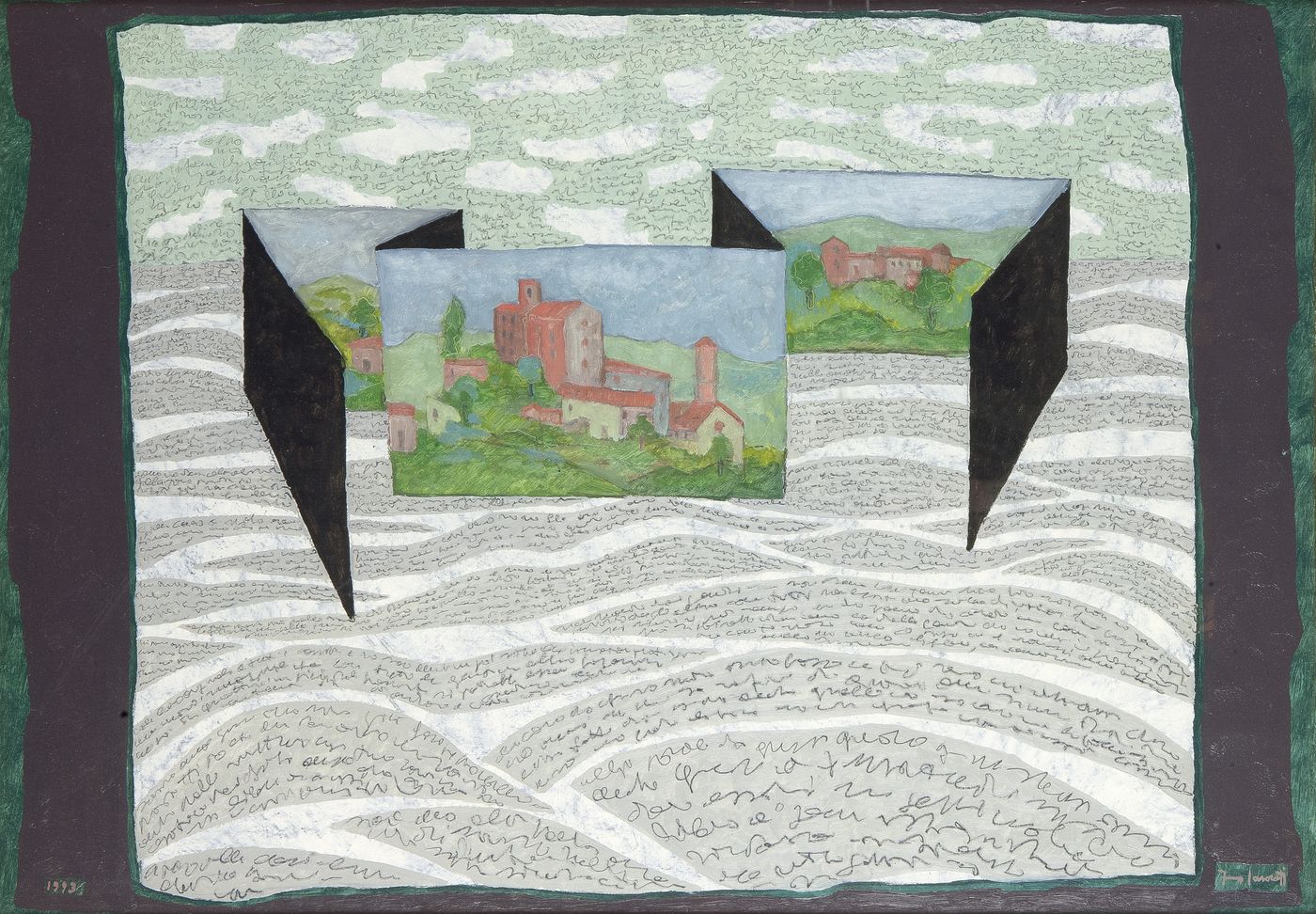 CASORATI FRANCESCO (Torino 1934) - "Paesaggio nel paesaggio" 1993, 50x70 olio su tavola. Opera firmata in basso a destra e datata in basso a sinistra; firmata, datata e intitolata al retro