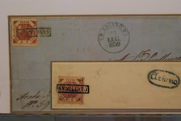 NAPOLI ANNULLAMENTI - 1859, ARIANO, annullato + cerchio azzurro (p.6) su 2...