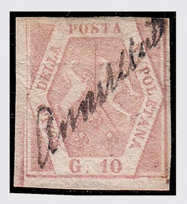 NAPOLI ANNULLAMENTI - 1858, BOVINO, "Annullato" a penna (p.R2) su 10 gr. Rosa...