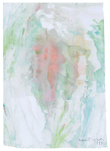 LIDIA PUGLIOLI S. Lazzaro di Savena (BO) 1919 Un volto di donna, omaggio al pittore francese Bonnard, 1991 tecnica mista su carta cm. 25x17, firma e anno in basso a destra, titolo, firma e anno al retro.
