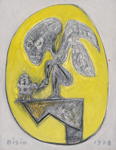 PIETRO BISIO DA GEROLA Casei Gerola (PV) 1932 ...Piera...= angelo ribelle..., 1978 tecnica mista su tela cm. 90x70, firma in basso a sinistra, anno in basso a destra, titolo, firma, anno ed etichetta della Galleria Valente Arte Contemporanea (Finale Ligure) al retro.