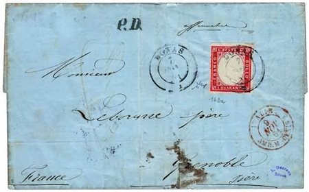 REGNO DI SARDEGNA ANNULLAMENTI - 1861, DONAS doppio cerchio (p.8) su 40 c. (16Da) su lettera per Grenoble, 7/11/61. (Chiavarelli).(LETTERA)