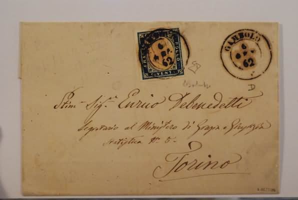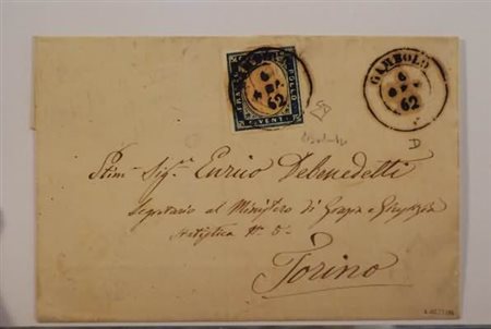 REGNO DI SARDEGNA ANNULLAMENTI - 1862, GAMBOLO, doppio cerchio (p7) su 20 c. (15D) su lettera per Torino, 6/1/62. (E. Diena).(LETTERA)
