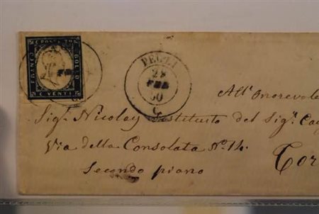 REGNO DI SARDEGNA ANNULLAMENTI - 1860, PEGLI (p.8) su 20 c. azzurro...