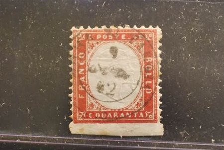 REGNO D'ITALIA - 1862, 40 c. rosso carminio non dentellato in basso (3k) con ampio margine ed annullo di Arma di Taggia (p. 11). Lieve cenno di grinza orizzontale.(USATO)