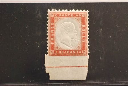 REGNO D'ITALIA - 1862, 40 c.rosso carminio, non dentellato in basso con margine di foglio con linea di riquadro (3l). (G. Oliva - B.S.Oliva).(GOMMA ORIGINALE)