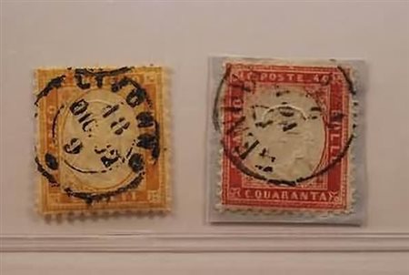 REGNO D'ITALIA - 1862, 2 valori (1, 3) il 40 c. su frammento.(USATO)