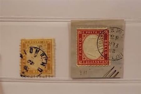 REGNO D'ITALIA - 1862, 2 valori: (1, 3 su frammento).(USATO)