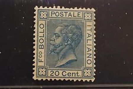 REGNO D'ITALIA - 1867, 20 c. azzurro (T26) ben centrato. Da esaminare. (Cert. Caff.).(GOMMA ORIGINALE)
