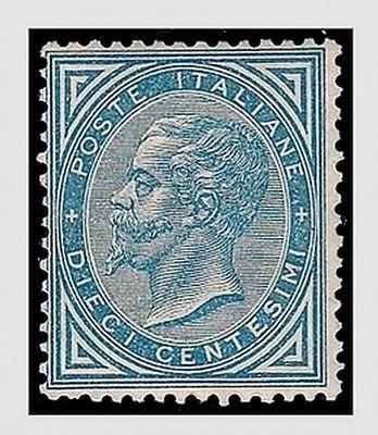 REGNO D'ITALIA - 1877, 10 c. azzurro (27) di discreta centratura. (Cert. A. Diena, Cert. Fiecchi, Cert.R. Diena).(GOMMA ORIGINALE)