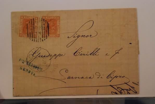 REGNO D'ITALIA - 1879, 20 c. arancio (28) 2 esemplari su lettera da Genova per Larnaca di Cipro, 28/6/79.(LETTERA)