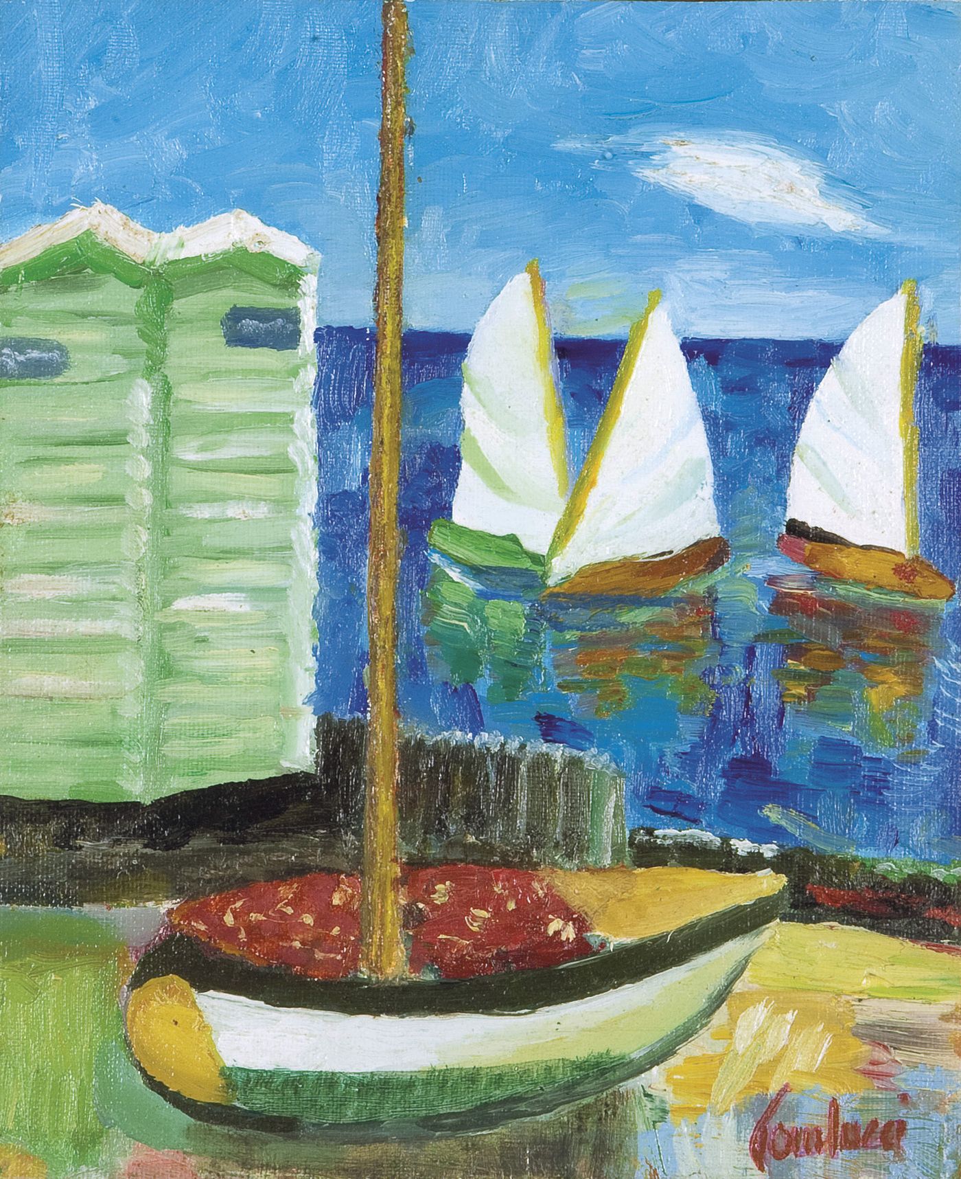 PAULUCCI ENRICO (Genova 1901 - 1999 Torino) - "Darsena", 18x24 olio su tela. Opera firmata in basso a destra. Autentica dell'artista su fotografia. Opera archiviata registrata nell'Archivio delle opere di Enrico Paulucci in data 1 ottobre 2001 al n. A150