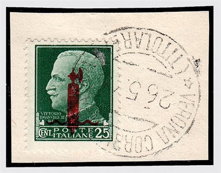 REPUBBLICA SOCIALE ITALIANA - 1944, 25 c. fascio rosso (490) su piccolo frammento con annullo di Verona. (B. S. Oliva. Cert. Vignati).(FRAMMENTO)