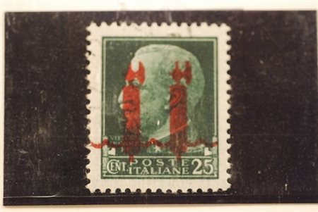 REPUBBLICA SOCIALE ITALIANA - 1944, 25 c. con doppio fascio rosso (490b), annullo praticamente invisibile. (G. Oliva).(USATO)