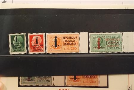 REPUBBLICA SOCIALE ITALIANA - 1944, 25 c.verde e 75 c.rosso (491+494) +...