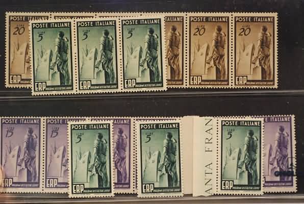 Lot 3413 | REPUBBLICA ITALIANA - 1949, ERP, 3 valori cpl. (601/03) lotto di 6...