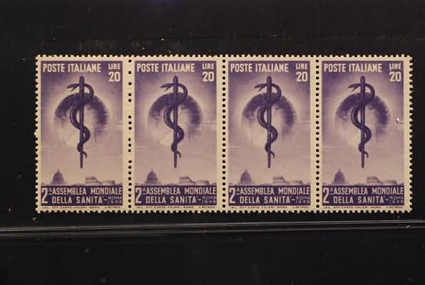 Lot 3418 | REPUBBLICA ITALIANA - 1949, Sanità 20 lire (607) striscia di 4.(GOMMA INTEGRA)