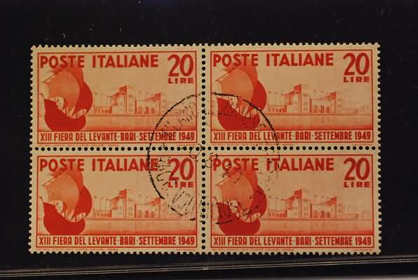 Lot 3424 | REPUBBLICA ITALIANA - 1949, Fiera del Levante, 20 lire rosso (610) blocco di...