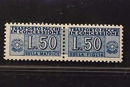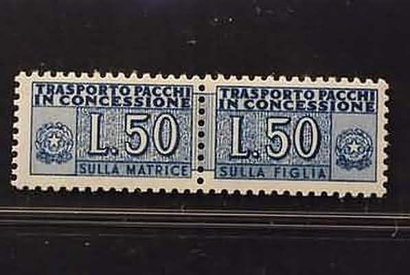 REPUBBLICA ITALIANA - 1955, Pacchi in concessione, 50 lire azzurro (2/I).(GOMMA INTEGRA)