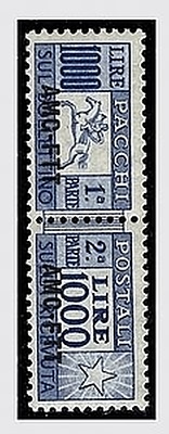 TRIESTE ZONA A - 1954, Pacchi postali, 1.000 lire "cavallino" (26).(GOMMA...