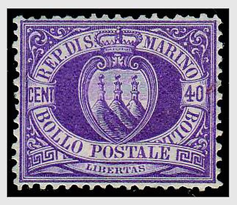 SAN MARINO - 1877, Stemma 40 c. lilla scuro (7) fresco e molto ben centrato....