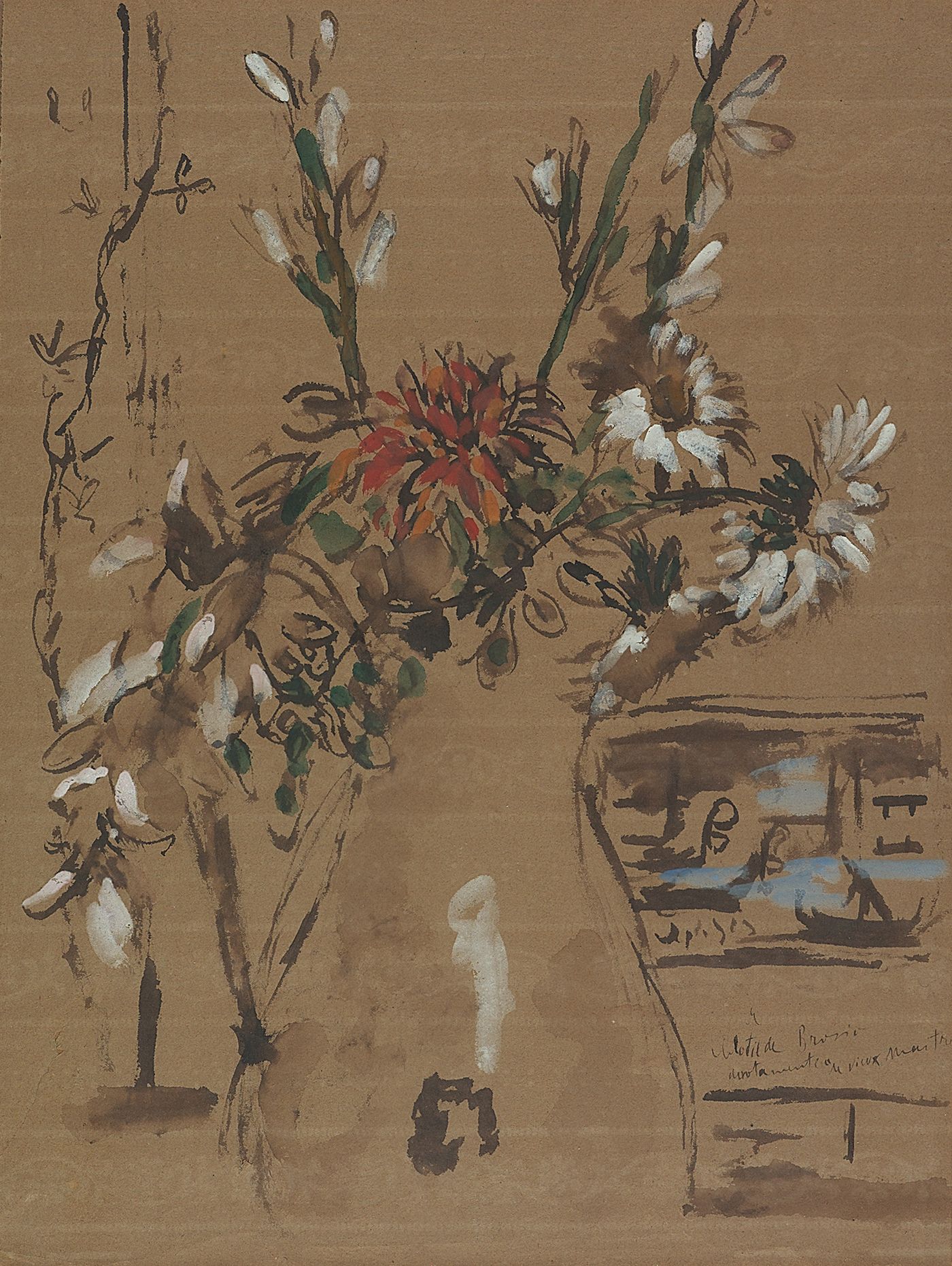 DE PISIS FILIPPO (Ferrara 1896 - 1956 Milano) - "Vaso di fiori", 49x38 acquerello su cartoncino. Opera firmata in basso a destra e dedicata ad personam. Già collezione Manlio Brosio, Torino. Cat. n. 03276 Archivio De Pisis