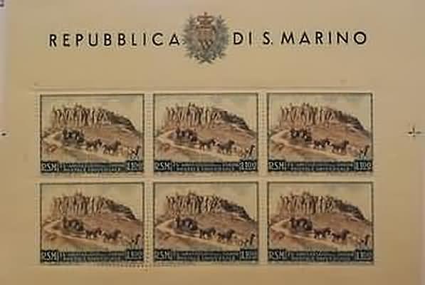SAN MARINO - 1949, Foglietti, UPU 100 lire (8) traccia leggera.(GOMMA ORIGINALE)