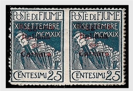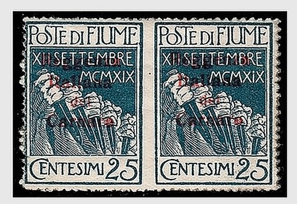 TERRE REDENTE - 1920, FIUME, Reggenza del Carnaro 25 c. azzurro (139a) coppia...